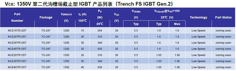 對(duì)于感應(yīng)加熱、太陽(yáng)能等諧振開(kāi)關(guān)應(yīng)用,推出了新一代1200V、1350V產(chǎn)品系列,具有高擊穿電壓、大通流容量等優(yōu)勢(shì);與反并聯(lián)二極管或單片集成二極管合并封裝,方便應(yīng)用設(shè)計(jì)。