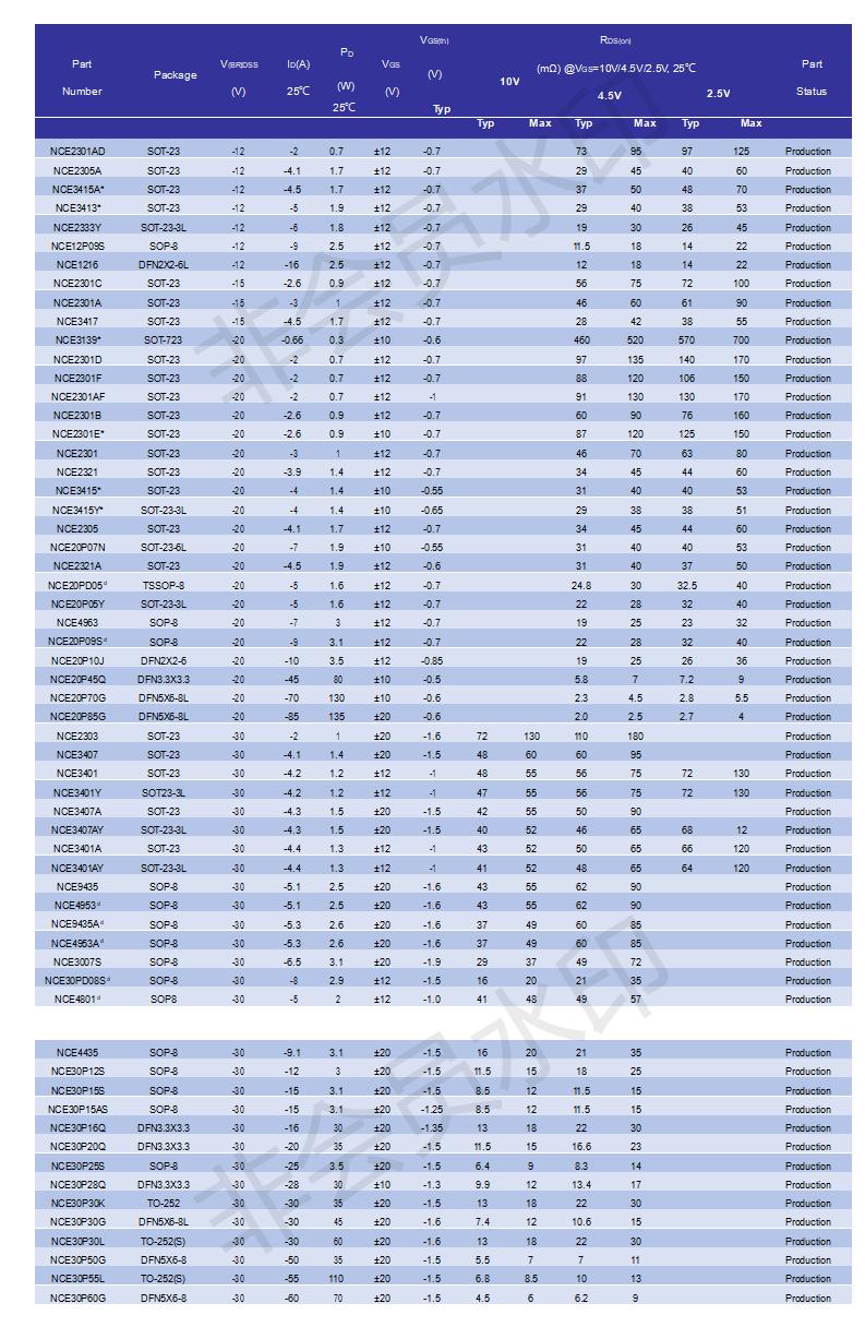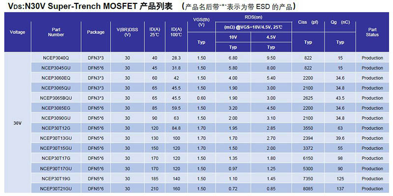 1.溝槽型(Trench)功率MOSET(12V-200V):N溝道、P溝道、N+P溝道