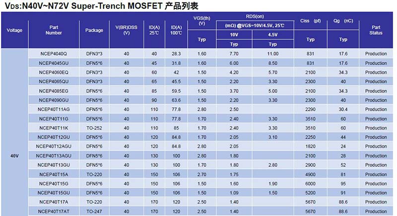 目前推出的量產(chǎn)品種包含30V~230V的電壓系列,同時(shí)為您帶來(lái)包括TO-247、TO-220、TO-220F、TO-263、TO-252、DFN 5*6等多款封裝外形選擇。