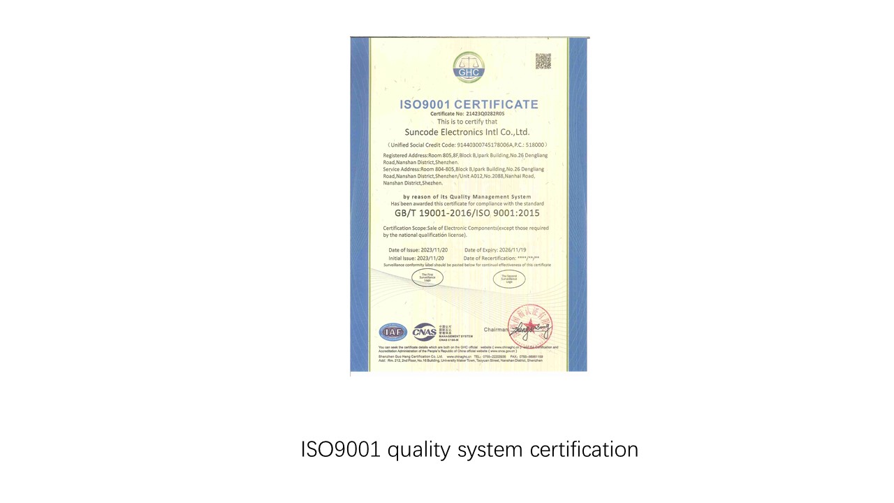 The company's quality management system has been formulated based on ISO9001:2022, and has detailed operating procedures to strictly control quality. The purpose of quality management is to ensure that the quality of all components sold by our company is absolutely original. Establish a complete quality system: